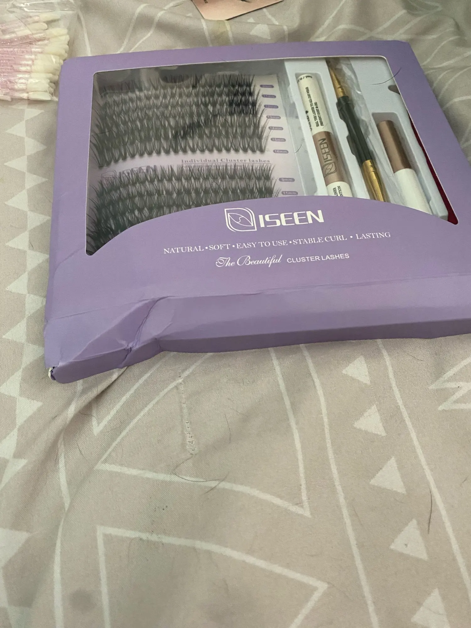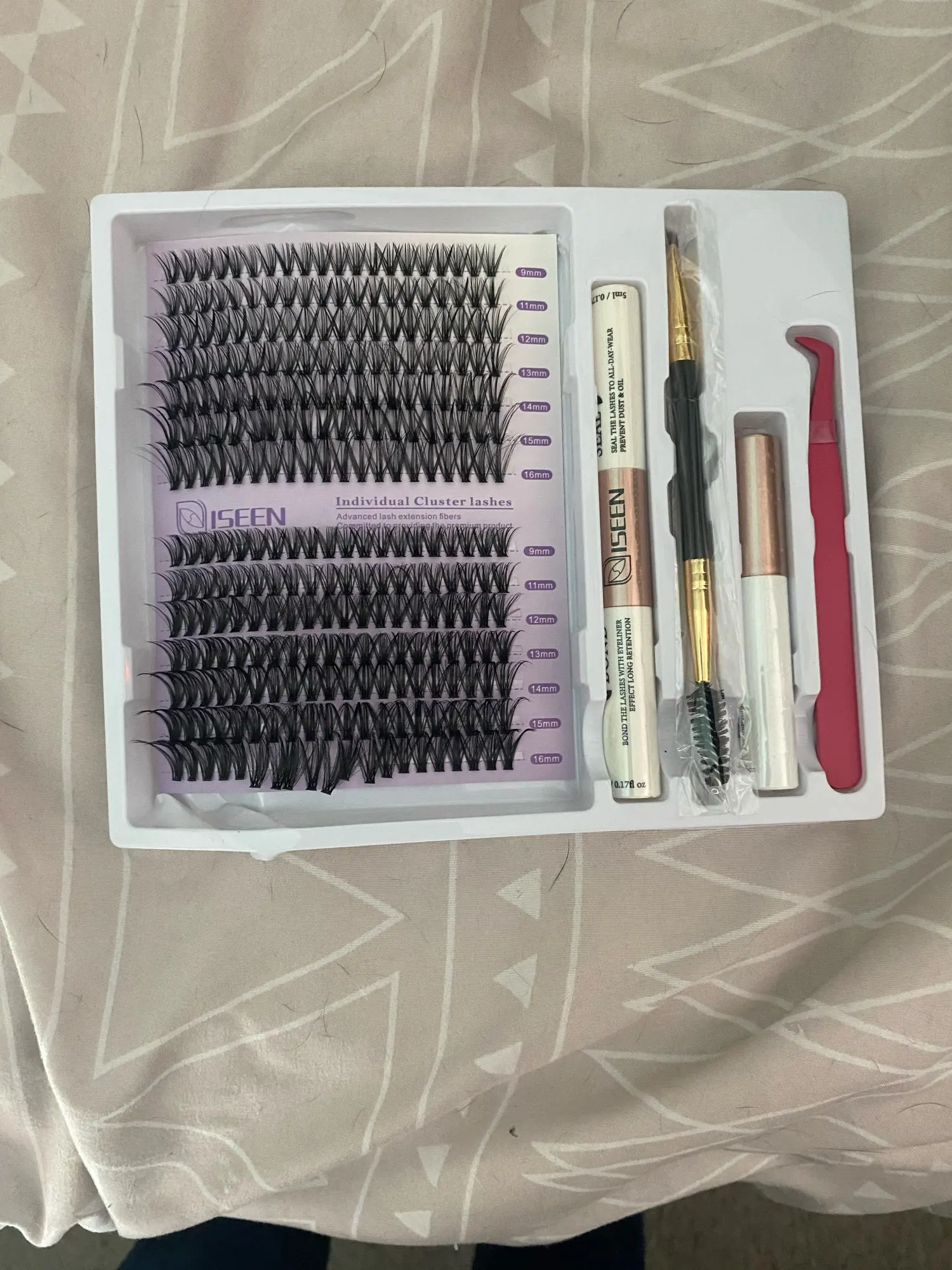 To use the ISEEN lash extension kit, start by choosing the desired lash length and type. Clean and dry your lashes, then grab an extension with the tweezers, apply a bit of glue, and attach it to your natural lashes. Let it dry for a few seconds and adjust as needed for a seamless result.